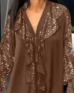 Haut décontracté à plis et patchwork de sequins de couleur unie