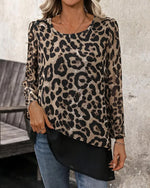Blouse À Col Rond Imprimé Léopard Ample