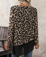 Chemisier décontracté à imprimé léopard à manches longues