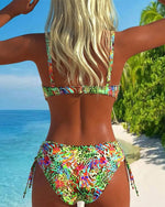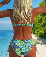 Maillot De Bain Lacé Imprimé Léopard Deux Pièces