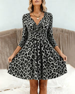 SPÉCIFICATIONS Style: Décontracté Matériel: Mélange de coton Type de la robe: A-Line Longueur de la robe: Au-dessus du genou Forme du col: Col en V Type du dessin: Imprimé léopard Type de la manche: Manches régulières Longueur de la manche: Manches longues Détails: Nouer Type d'ajustement: Habituel Saison: Printemps,Automne,Hiver Occasion: Quo...