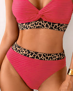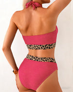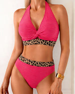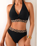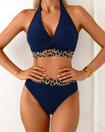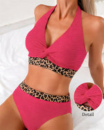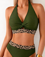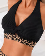 Bikini Texturé Imprimé Léopard Patchwork Halter