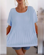 SPÉCIFICATIONS Style: Élégant Matériel: 100% Fibre polyester Type de la robe: Robe jambe droite Longueur de la robe: Longueur du genou Forme du col: Col rond Type du dessin: Couleur pure Type de la manche: Manches régulières Longueur de la manche: Manches courtes Détails: Froncé Type d'ajustement: Habituel Saison: Printemps, Été Occasion: Qu...