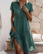 SPÉCIFICATIONS Style: Décontracté, Entreprise Matériel: Mélange de coton Type de la robe: Chemisier Longueur de la robe: Maxi Forme du col: Col de chemise Type du dessin: Impression Type de la manche: Manches régulières Longueur de la manche: Manches demies Détails: Fente Type d'ajustement: Habituel Saison: Été Occasion: Quotidien, Travaille...