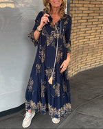 SPÉCIFICATIONS Style: Décontracté, Vacances Matériel: 5% Élasthanne, 95% Fibre polyester Type de la robe: A-Line Longueur de la robe: Maxi Forme du col: Col en V Type du dessin: Impression Type de la manche: Manches régulières Longueur de la manche: Manches 3/4 Détails: Boutons, Cordon Type d'ajustement: Habituel Saison: Printemps, Été Occasi...