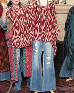 Blouse Manches Chauve-Souris Imprimé Manches Longues