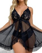 Dentelle Florale Halter Babydoll Robe De Lingerie Avec String