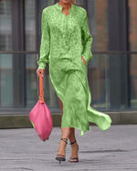 SPÉCIFICATIONS Style: Décontracté Matériel: Mélange de coton Type de la robe: A-Line Longueur de la robe: Maxi Forme du col: Col en V Type du dessin: Impression Type de la manche: Manches d'épaule tombées Longueur de la manche: Manches 3/4 Détails: Boutons Type d'ajustement: Habituel Saison: Printemps,Été Occasion: Quotidien Contenu du colis: ...