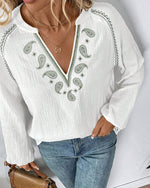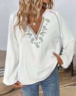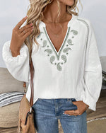 SPÉCIFICATIONS Type de la veste: Chemisiers Style: Décontracté Matériel: Mélange de coton Occasion: Quotidien Forme du col: Col rond Type du dessin: Fleurs,Couleur pure Type de la manche: Manches papillon Longueur de la manche: Manches longues Type d'ajustement: Habituel Saison: Printemps,Été Détails: Broderie Contenu du colis: 1 x Chemisier T...