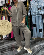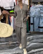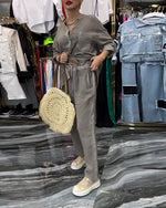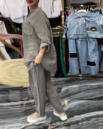 SPÉCIFICATIONS Style: Décontracté Type de la veste: T-shirt Catégorie: Ensembles Matériel: Coton chanvre Type du dessin: Couleur pure Forme du col: Col rond Type de la manche: Manches régulières Longueur de la manche: Manches courtes Longueur du pantalon: Long Type de la taille: Taille moyenne Type d'ajustement: Habituel Saison: Printemps,Été ...