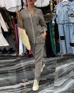 Pantalon droit décontracté de couleur unie avec poche zippée
