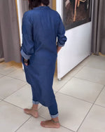 SPÉCIFICATIONS Style: Décontracté, Entreprise Matériel: Coton chanvre Type de la robe: Robe jambe droite Longueur de la robe: Longueur du genou Forme du col: Col rond Type du dessin: Couleur pure Type de la manche: Manches régulières Longueur de la manche: Manches longues Détails: Poche, Boutons Type d'ajustement: Habituel Saison: Printemps, ...