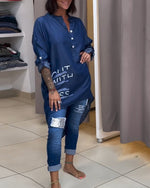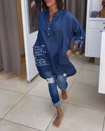Blouse Col En V Manches Longues Imprimée Décontractée