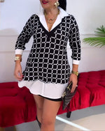 SPÉCIFICATIONS Style: Décontracté Matériel: A: 95% Coton, 5% Polyester; B: 100% Polyester Type de la robe: Robe jambe droite Longueur de la robe: Longueur du genou Forme du col: Col rond Type du dessin: Point,Impression Type de la manche: Manches régulières Longueur de la manche: Manches longues Détails: Couture de matériau Type d'ajustement:...