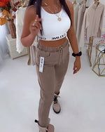 Pantalon décontracté à cordon de couleur unie