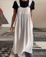 SPÉCIFICATIONS Style: Décontracté Matériel: 100% Coton Type de la robe: Robe jambe droite Longueur de la robe: Maxi Forme du col: Col en U Type du dessin: Couleur pure Longueur de la manche: Sans manches Détails: Couture de matériau,Poche Type d'ajustement: Habituel Saison: Été Occasion: Quotidien Contenu du colis: 1 x Robe TABLEAU DES TAI...