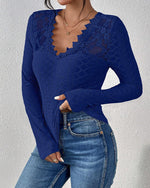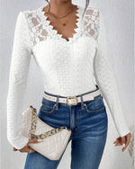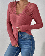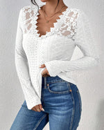 SPÉCIFICATIONS Type de la veste: Hauts Style: Désirable Matériel: 100% Polyester Occasion: Quotidien Forme du col: Col à revers Type du dessin: Couleur pure Type de la manche: Manches régulières Longueur de la manche: Manches longues Type d'ajustement: Habituel Saison: Printemps,Été,Automne Détails: Dentelle Contenu du colis: 1 x Haut TABL...