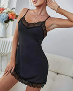 Robe nuisette en dentelle brodée de papillons et de fleurs