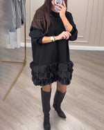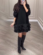SPÉCIFICATIONS Style: Élégant Matériel: A: 100% Polyester; B: 97% Polyester, 3% Élasthanne Type de la robe: A-Line Longueur de la robe: Longueur du genou Forme du col: Col en U Type du dessin: Paillettes Type de la manche: Manches à gigot Longueur de la manche: Manches longues Détails: Volants Type d'ajustement: Habituel Saison: Automne,Hiver...