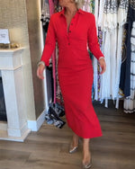 Robe tendance en dentelle à boutons et revers de couleur unie