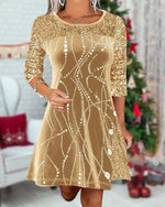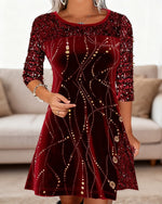 SPÉCIFICATIONS Style: Élégant Matériel: Mélange de coton,Paillettes Type de la robe: Robe jambe droite Longueur de la robe: Longueur du genou Forme du col: Col rond Type du dessin: Paillettes,Couleur pure Type de la manche: Manches régulières Longueur de la manche: Manches 3/4 Type d'ajustement: Habituel Saison: Automne,Hiver Occasion: Quotidi...
