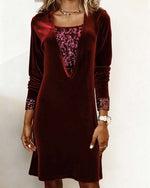 Robe Col Rond Manches Longues À Paillettes Patchwork