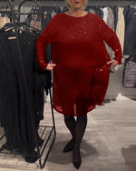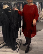 Robe Col Rond Manches Longues À Paillettes Patchwork