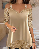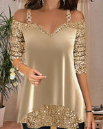 Blouse Avec Panneau De Sequins Et Manches Longues