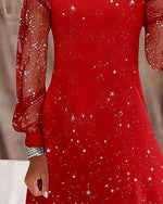 SPÉCIFICATIONS Style: Élégant Matériel: A: 100% Polyester; B: 97% Polyester, 3% Élasthanne Type de la robe: A-Line Longueur de la robe: Longueur du genou Forme du col: Col en U Type du dessin: Paillettes Type de la manche: Manches à gigot Longueur de la manche: Manches longues Détails: Volants Type d'ajustement: Habituel Saison: Automne,Hiver...