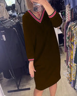 SPÉCIFICATIONS Style: Décontracté Matériel: Mélange de coton Type de la robe: Robe jambe droite Longueur de la robe: Au-dessus du genou Forme du col: Col en V Type de la manche: Manches régulières Longueur de la manche: Manches demies Détails: Couture de matériau,Forage à chaud Type d'ajustement: Habituel Saison: Automne,Hiver Occasion: Quotid...