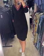 SPÉCIFICATIONS Style: Décontracté Matériel: 95 % polyester, 5 % élasthanne Type de la robe: Robe jambe droite Longueur de la robe: Longueur du genou Forme du col: Col en V Type du dessin: Motifs géométriques Type de la manche: Manches régulières Longueur de la manche: Manches longues Type d'ajustement: Habituel Saison: Printemps, Automne, Hiv...