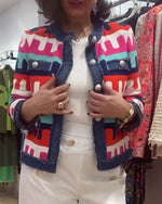 Manteau en jean décontracté à manches longues et revers boutonnés