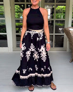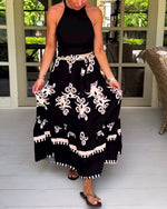 Jumpsuit avec Motifs de Plantes et de Fleurs, Style Épaules Nues