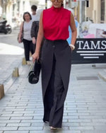 Pantalon Élégant Haute Taille Brillant Large Jambe