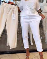 Pantalon taille haute bouton neuf points