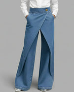 Pantalon Élégant Haute Taille Brillant Large Jambe