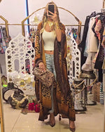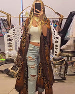 Manteau long décontracté à revers imprimé léopard