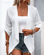 Cardigan élégant à manches courtes creux de couleur unie