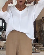 Chemisier patchwork décontracté à col en V et manches trois-quarts de couleur unie