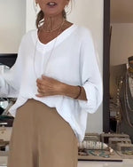 Blouse Polyvalente Col En V Imprimée Manches Mi-Longues
