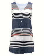 Débardeur Rayé Géométrique Contraste Bordure Sans Manches