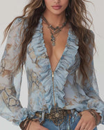 Blouse À Volants Col En V Imprimé Léopard