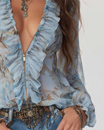 Blouse À La Mode Manche Volant Imprimée