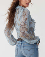Chemise Manche Bouffante Dégradé Imprimé Léopard