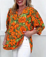 Blouse Imprimée À Col V Avec Boutons Sur Le Devant
