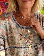 Blouse Retro Imprimé V-Cou Revers Sophistiqué