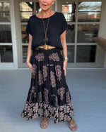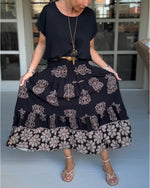 Jupe avec une Ceinture Élastique, des Impressions Rétro et un ourlet incurvé