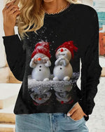 Haut décontracté à col en V et imprimé bonhomme de neige