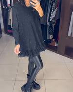 SPÉCIFICATIONS Style: Élégant Matériel: Mélange de coton,Paillettes Type de la robe: Robe jambe droite Longueur de la robe: Longueur du genou Forme du col: Col rond Type du dessin: Paillettes,Couleur pure Type de la manche: Manches régulières Longueur de la manche: Manches 3/4 Type d'ajustement: Habituel Saison: Automne,Hiver Occasion: Quotidi...