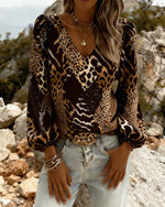 Chemise Imprimé Léopard Manche Courte Encolure V Bouton